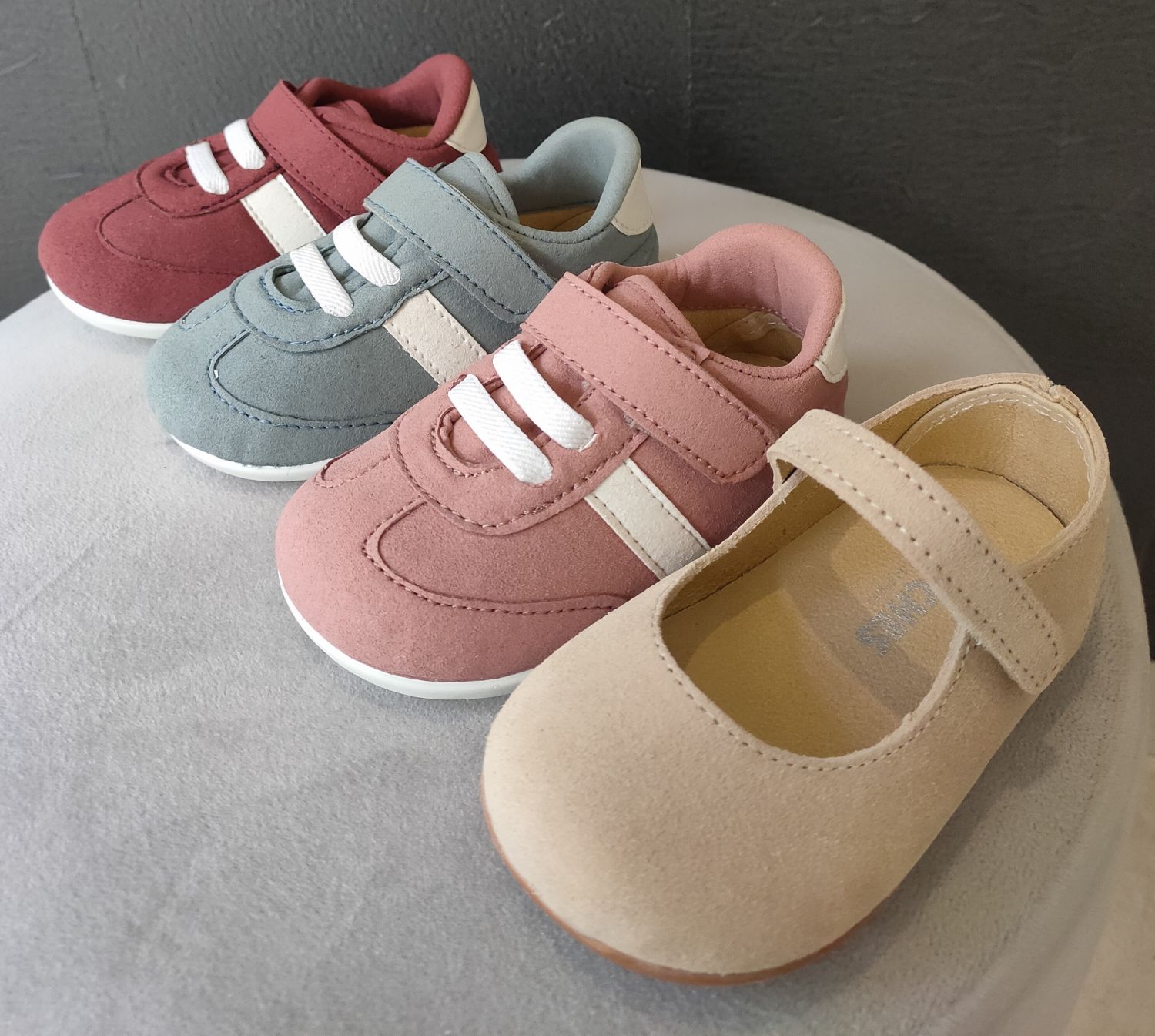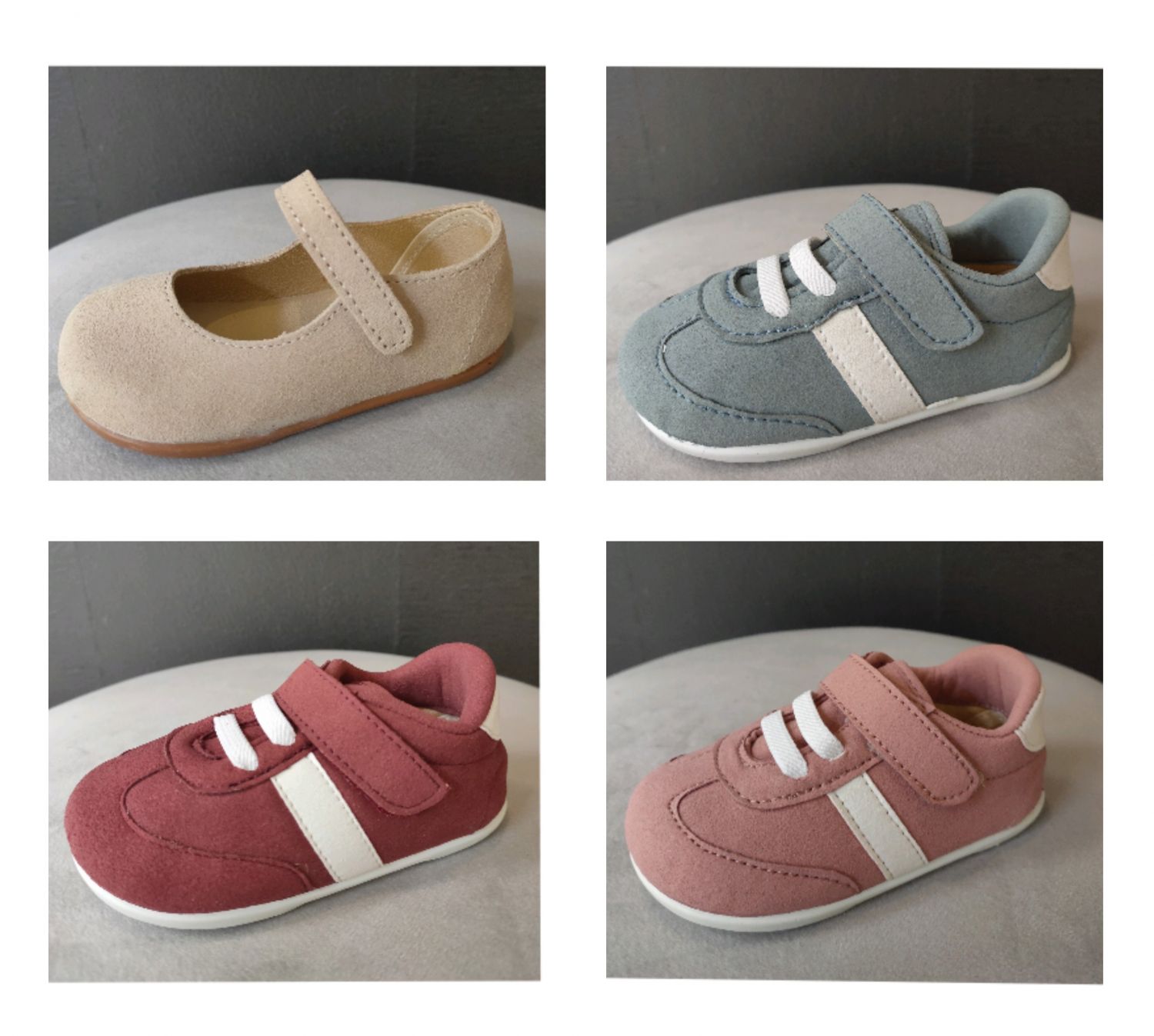 Zapatitos infantiles respetuosos de la marca alicantina Chuches. Diseñados para acompañar los primeros pasos de los peques con el máximo confort. Fabricados en suave gamuza con forro textil transpirable y en el caso de la mercedita piel serraje. Son ligeros, blanditos y cómodos.