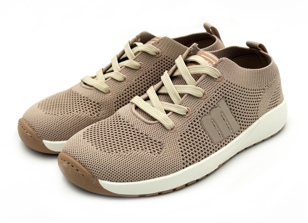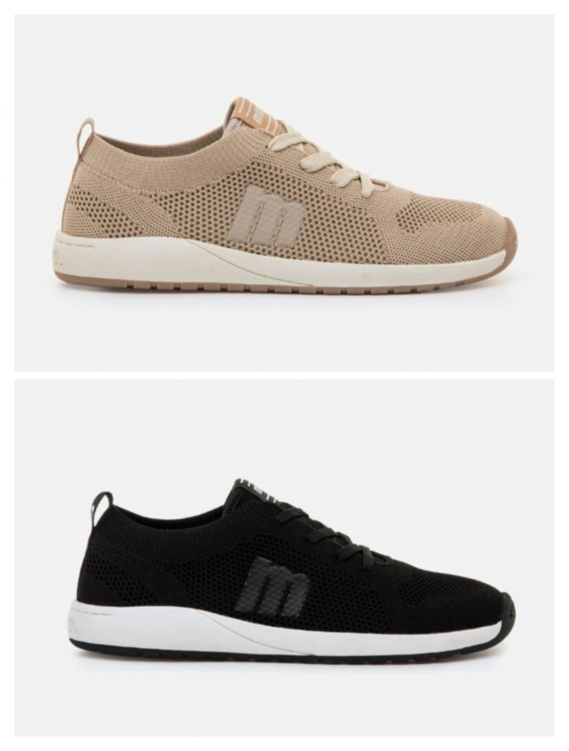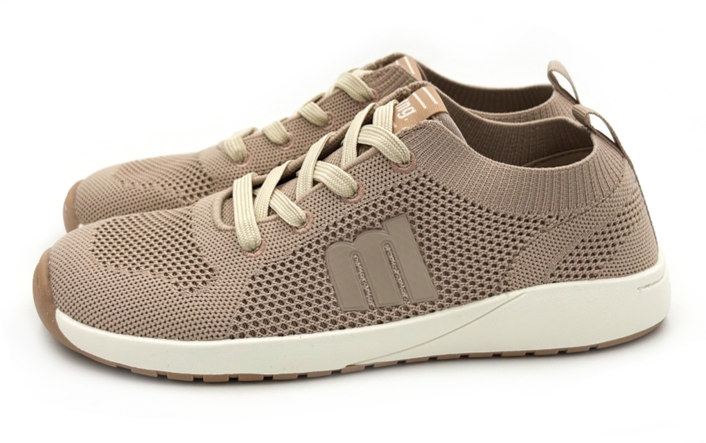 Zapatillas barefoot de estilo deportivo para mujer, modelo Free Apolo de Mustang en color beige y negro. Diseñadas con un upper de malla que aporta ligereza y transpirabilidad.