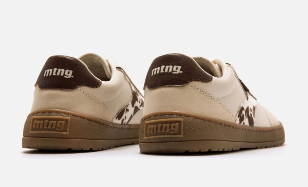 Su diseño destaca por la combinación de tonos neutros con detalles marrones que aportan un toque desenfadado y distinto.