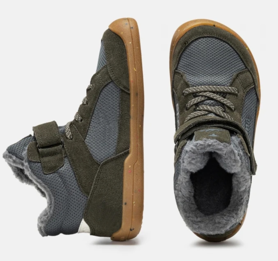 Diseñadas con materiales 100% reciclados respetando el desarrollo natural del pie y ofreciendo una pisada libre, saludable y cómoda, incluso en los días fríos.