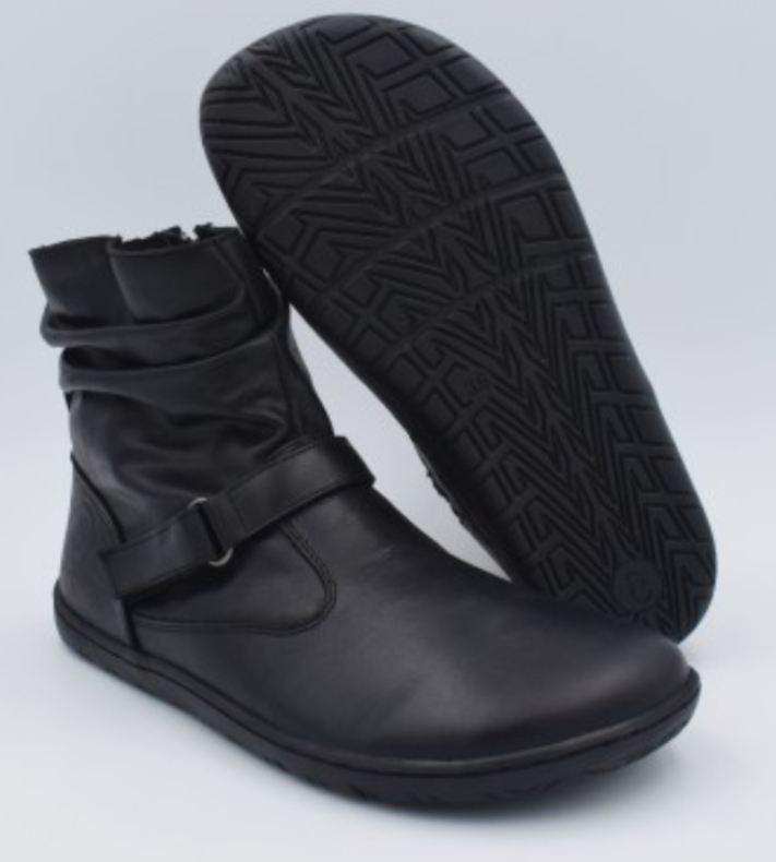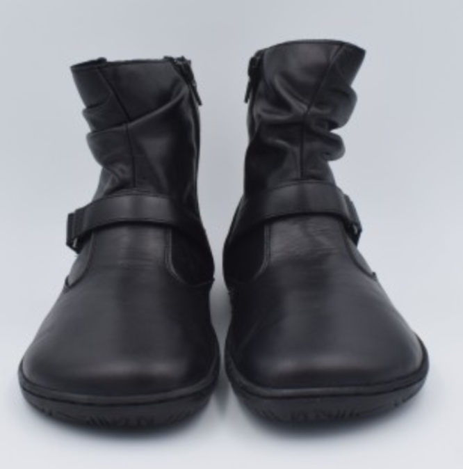 Elegante botín barefoot de caña media de Coqueflex, en piel natural color negro con forro interior cálido. En tallas de la 37 a la 41.