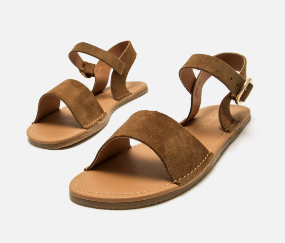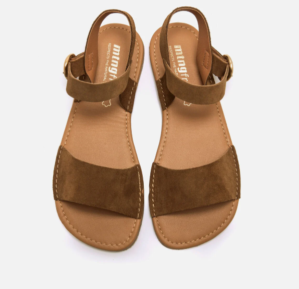 Sandalias barefoot de piel de color marrón roble para mujer, modelo Free Cleo de la marca Mustang.