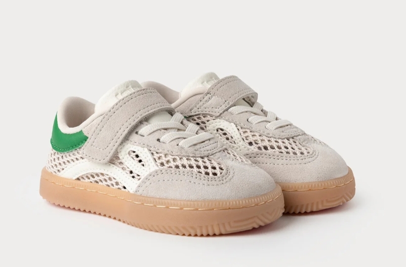 Materiales: combinación de piezas de piel sintética con "Mesh", un tejido de malla textil que permite el flujo de aire para mantener los pies de tu peque frescos y secos durante el verano.