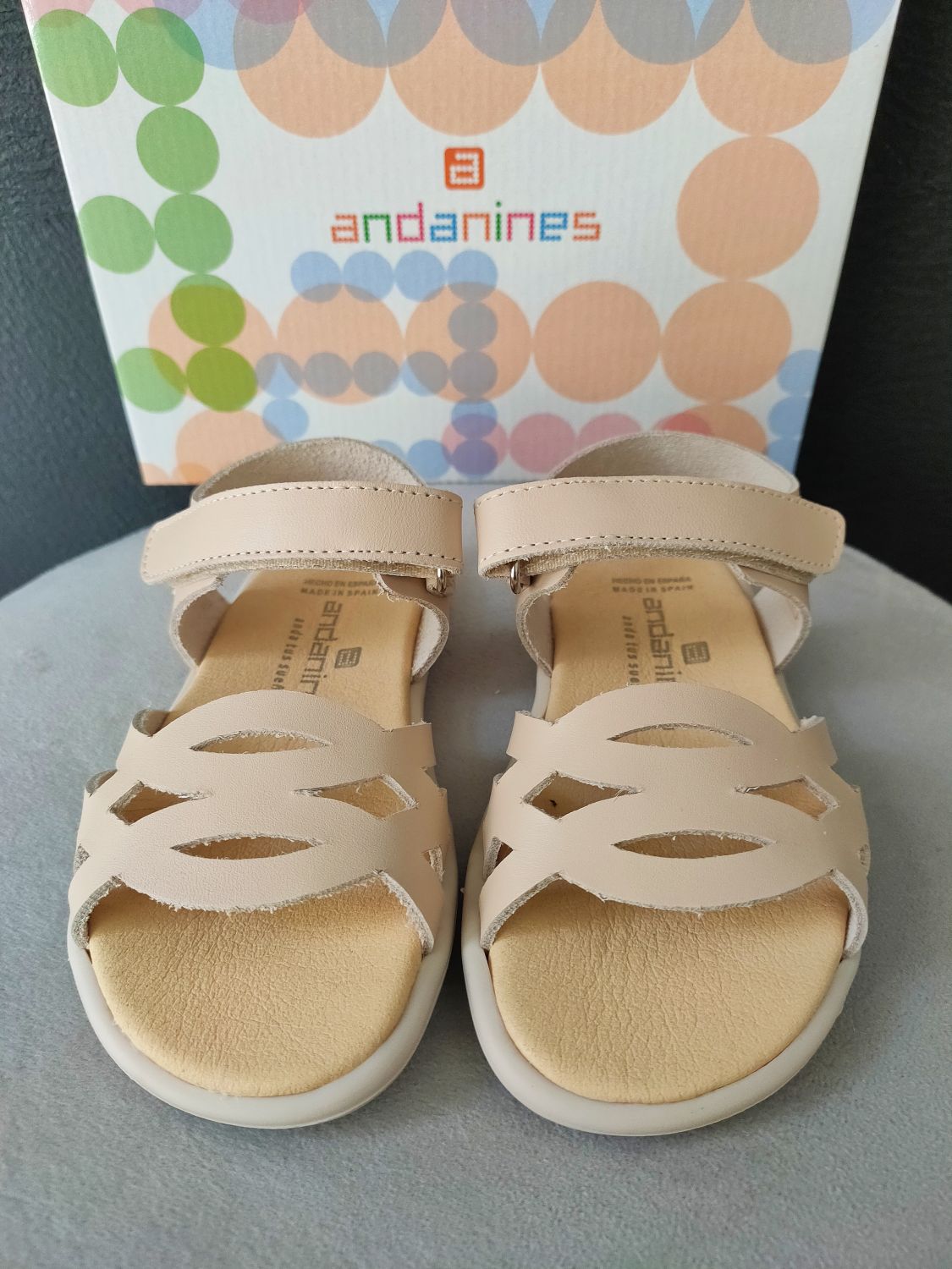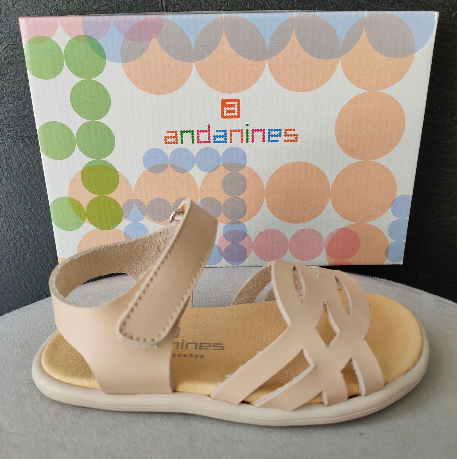 Sandalias respetuosas para niña confeccionadas en piel de la marca Andanines.